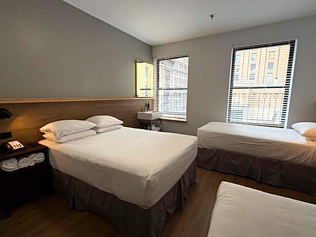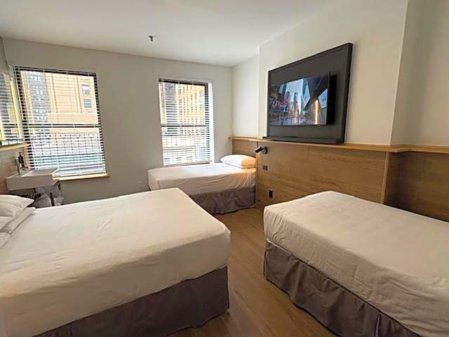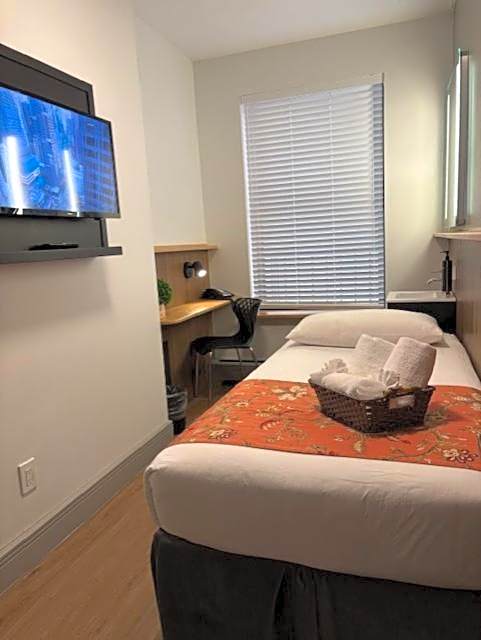 Each guest room includes an LCD flat-screen TV and a secure in-room safe, while the recently updated shared bathrooms offer a refreshed experience. For added convenience, every floor has a kitchenette featuring refrigerators and microwaves.